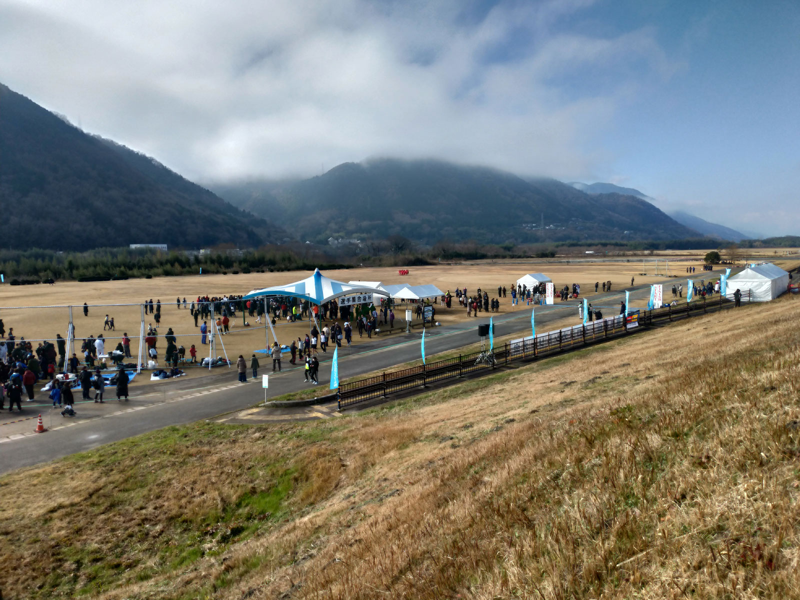 会場には7時半くらいに到着、受付を済ませて更衣室となっているアリーナで、自分の場所を確保して、レース前まではここで時間を潰す。 まだ7時半で、開会式が9時半から、ランナー誘導が10時~10時15分までで、スタートが10時半。 時間にはかなり余裕があるので、じっくりと準備をしよう。