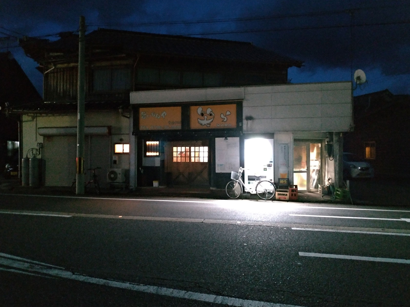 シャワーを浴びて、1時間位仮眠をして、18時前にホテルを出発。 毎年レース後に訪れている「地下酒場」へ。 毎年ここで地元のおじさんと会って飲んでいる。 昨年は手ぶらで来てしまったので、今年はお土産のうどんをおじさんと大将にあげようとおもって持ってきている。