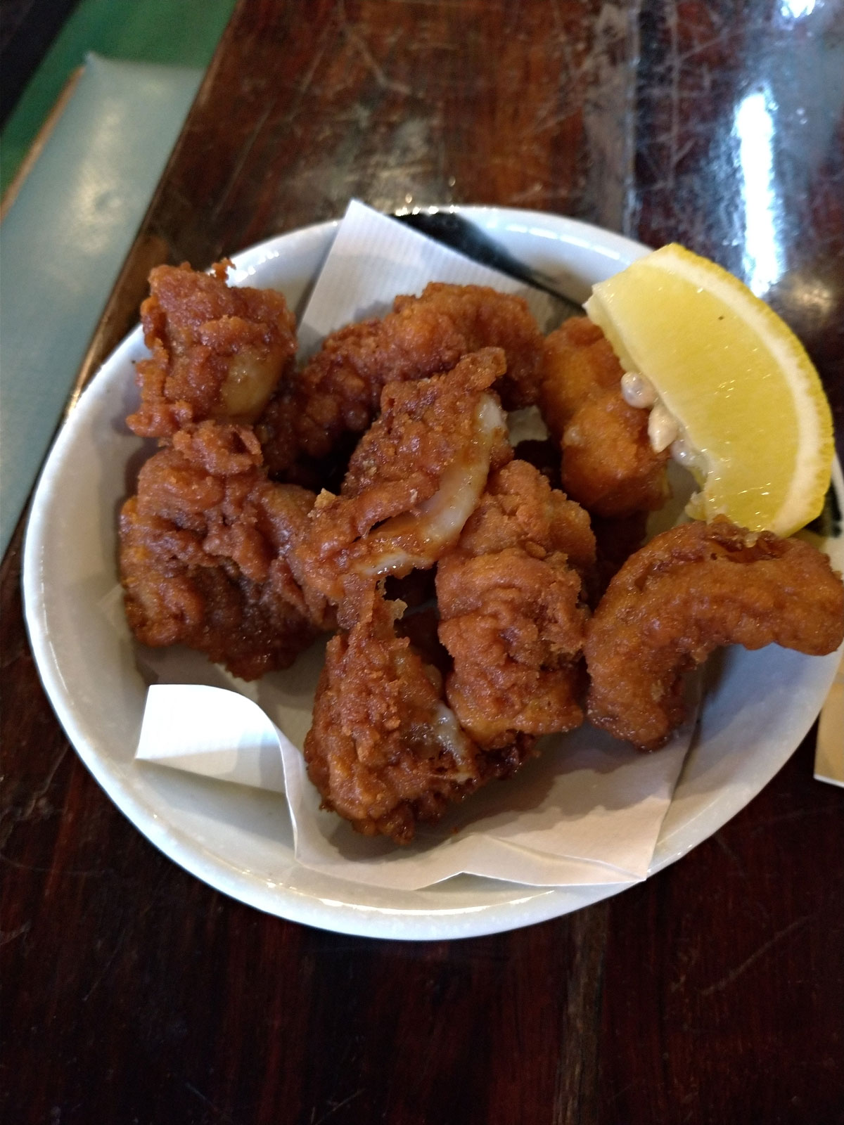ビール2杯、刺し身盛り合わせ、ポテトフライ、タコの唐揚げ、シシャモ焼き、ハタハタ天ぷら。 料理を注文しすぎてビールが2杯しか飲めなかったのだ…… 1人なのに4,950円も使ってしまった……