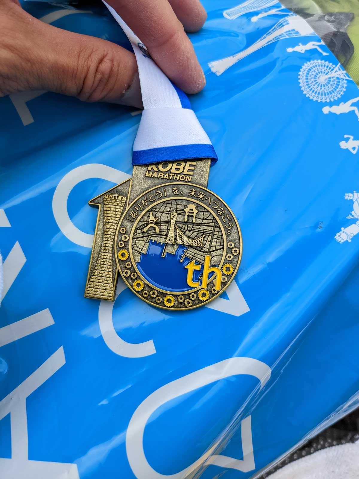 ゴール地点ではOS1を配布しているボランティア学生がいたが、OS1が美味しく感じた。 なので軽い脱水気味なのだろうか…… 一気に紙コップ2杯飲み干した。 給水所でスカイウォーターを飲み、すぐ先でアリナミンを貰って一気飲みし、完走メダルをもらって、地獄のような30段くらいの階段を上って、豚汁をもらって…… ゴール後のウイニングロードを歩いていくが、この道が上り坂か階段なのがきつい…… 数年前、ゴール地点を坂の上ではなく、坂の途中に変えたので、どうしてもゴール後に坂の上まで行かなくてはならないので、このような導線になっているが、今日みたいなレース展開の場合はゴール地点が少しでも下にあって助かったと思っている。