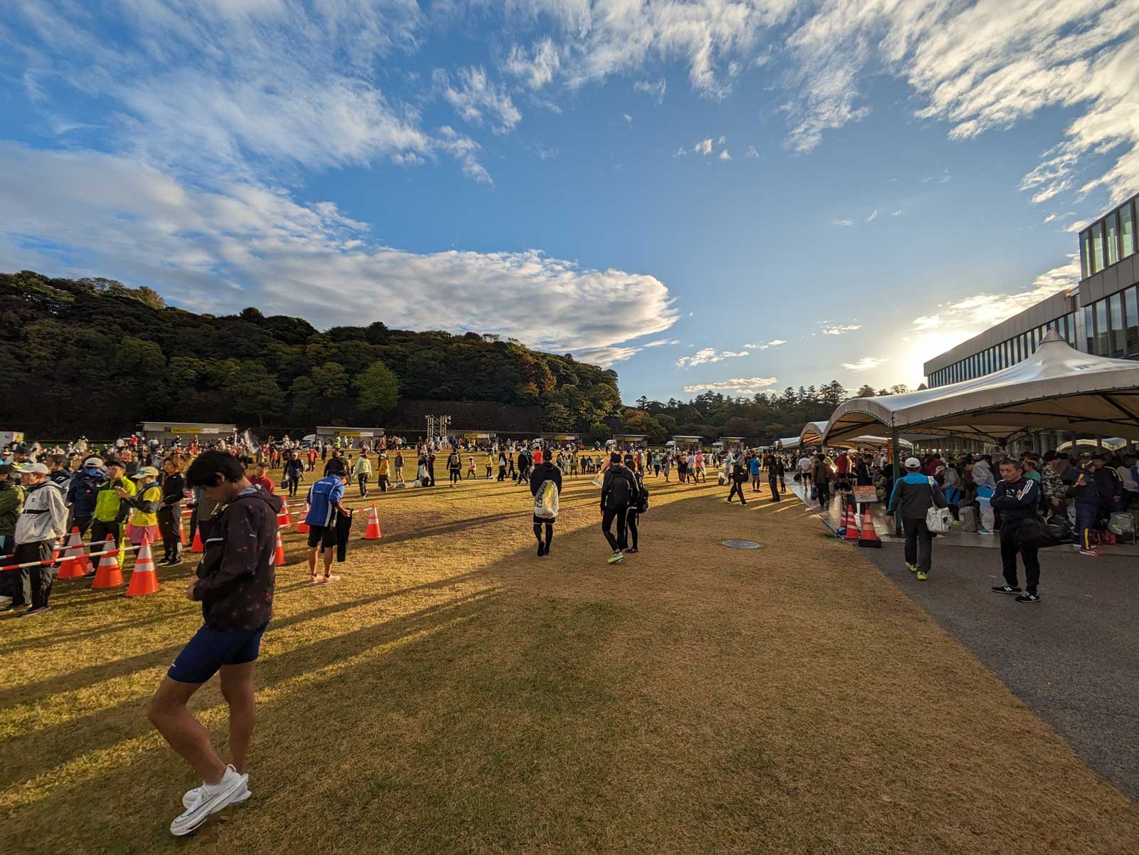 ここで7時55分くらいまで準備をして休む。 7時55分になり荷物預けへ。 自分の番号のトラックに荷物を預け、再度トイレに並ぶ。 トイレは先程とは違って大混雑だった。 だけど、まだ時間に余裕はある。 トイレに15分くらい並んで準備完了。 スタートブロックへと整列する。