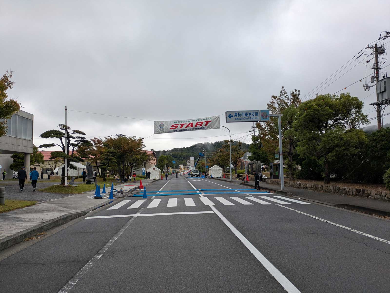 スタートの号砲から50秒後くらいにスタート地点を通過。 2025-26シーズン初戦のフルマラソン、富山マラソン2025が始まった。