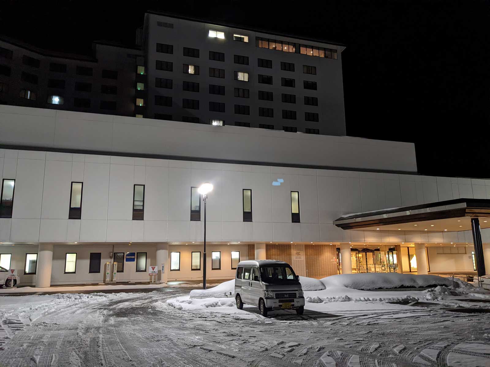朝食バイキングも昨日と同じ内容だったが、朝はあまりガッツリ食べられないので十分だった。 荷物の準備をして、8時10分くらいにホテルをチェックアウト。 館内のお土産屋でお土産を購入してスキー場へと向かう。