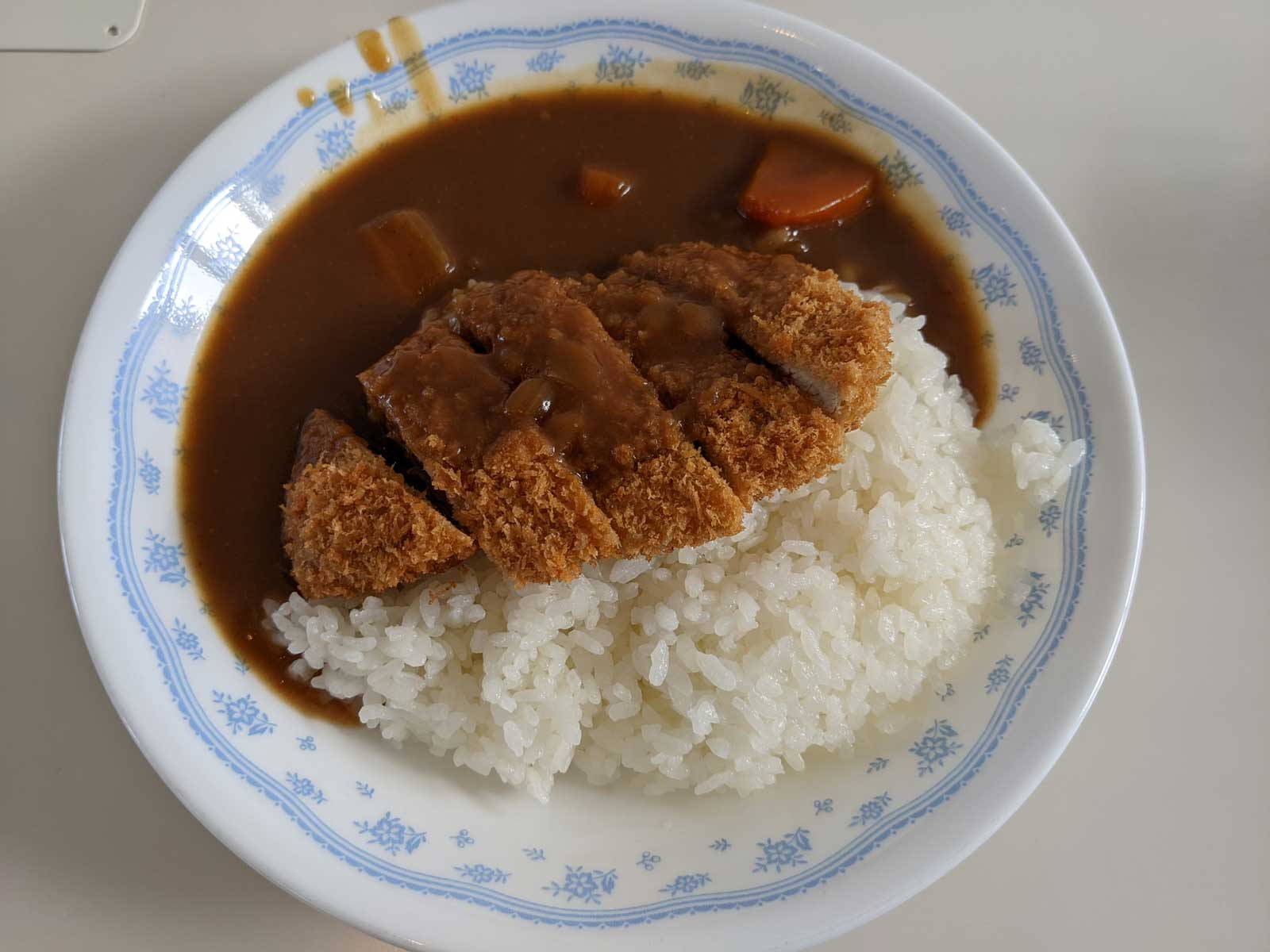お昼は13時過ぎに豪円山ロッジで食べたが、メニューが5種類くらいしかなくて、全然美味しそうなものがなかった。 子供たちは700円の玉子丼、自分は950円のカツカレーを食べた。