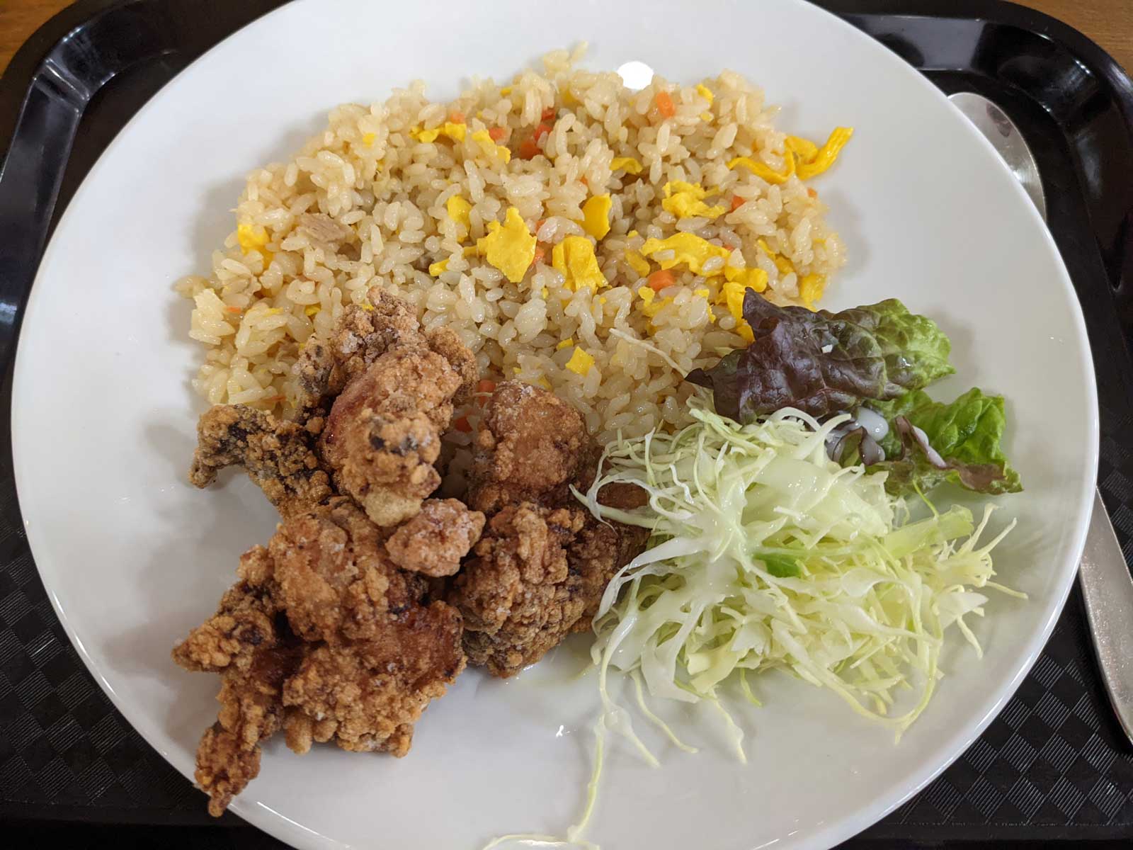 13時前にお昼ごはん、豪円山ロッジは全然種類がないので、アクセスリフトのすぐ横にある「ぎんれい」というところでお昼ごはん。 子供たちはラーメンを、自分は唐揚げピラフを食べた。