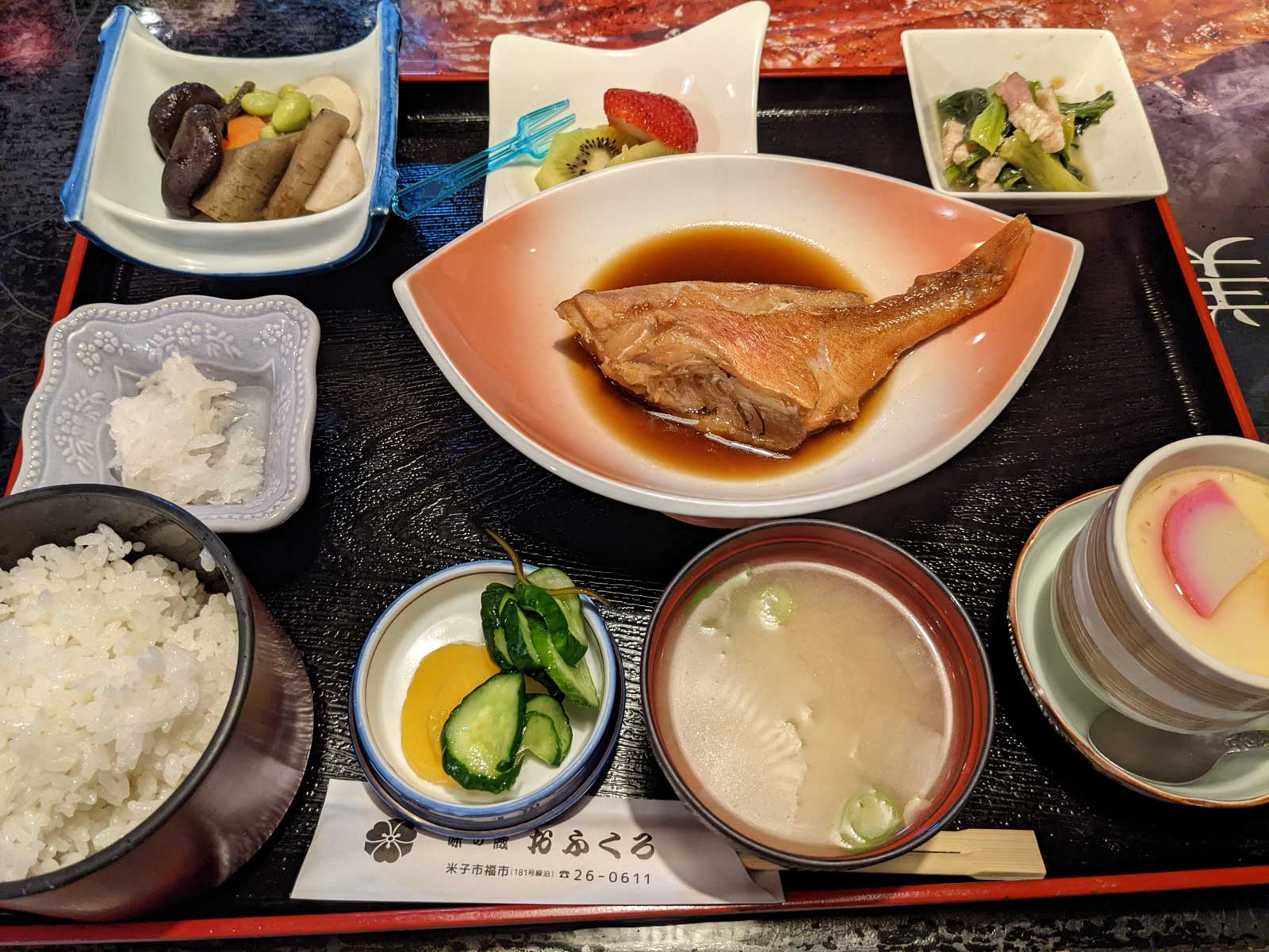 店に入ってから前回何食べたのか調べたら「焼サバ定食」だったので、今日は違うものを。 「赤魚煮付け定食」を食べることにした。 長男は天ぷらうどん、三女はとんかつセット。 三女のは絶対多すぎて残す。