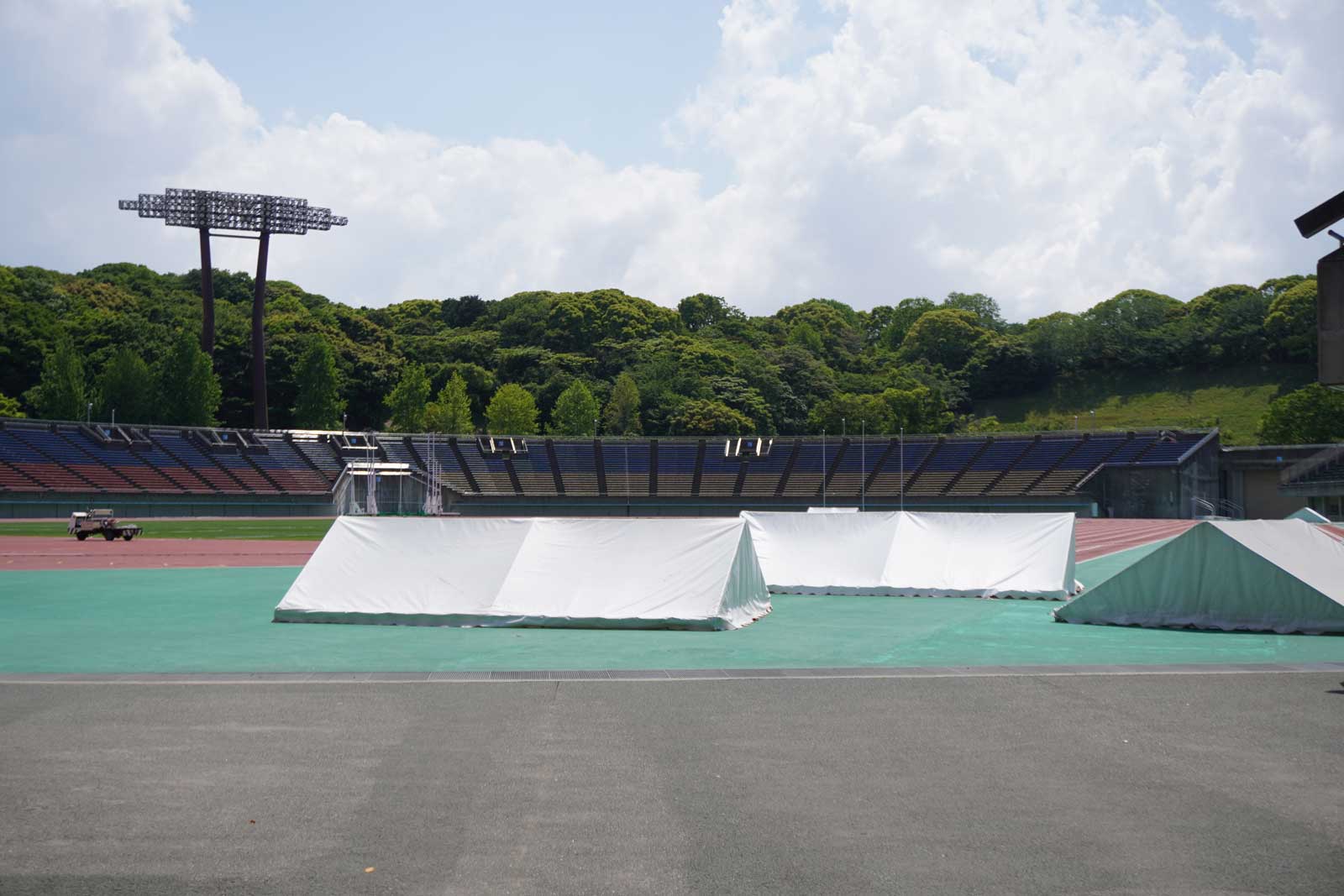 13時半くらいに博多の森陸上競技場に到着してしまった。 他に行くところもないし、道は混んでるので、どこか寄ったりしてたら遅刻してしまう可能性があったので、2時間半も早いがもう来てしまった。