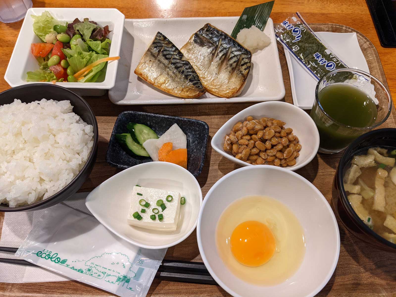 昨日の朝の駐車場はギリギリだったので、今日は8時過ぎには出発したいと思い、朝食は7時からにしておいた。 6時半くらいに起床して、大浴場で寝癖を直してから朝食へ。 大浴場に行くとき、寝起きすぎて、マスクを持っていくのを忘れてしまった。 タオルで口元を覆って凌いでいたのだけど、マスク忘れるだけで、ものすごい悪いことをしている気になってしまう。