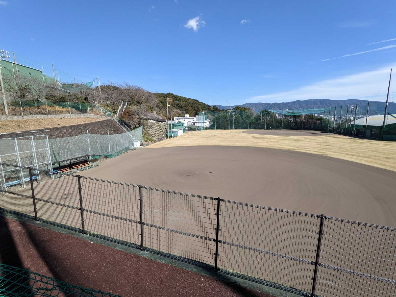 続いて、すぐ近くにある「安芸ドーム」に併設されている野球場へ。 ここは阪神タイガースの秋季キャンプ地のようで「安芸タイガース球場」と命名されている。
