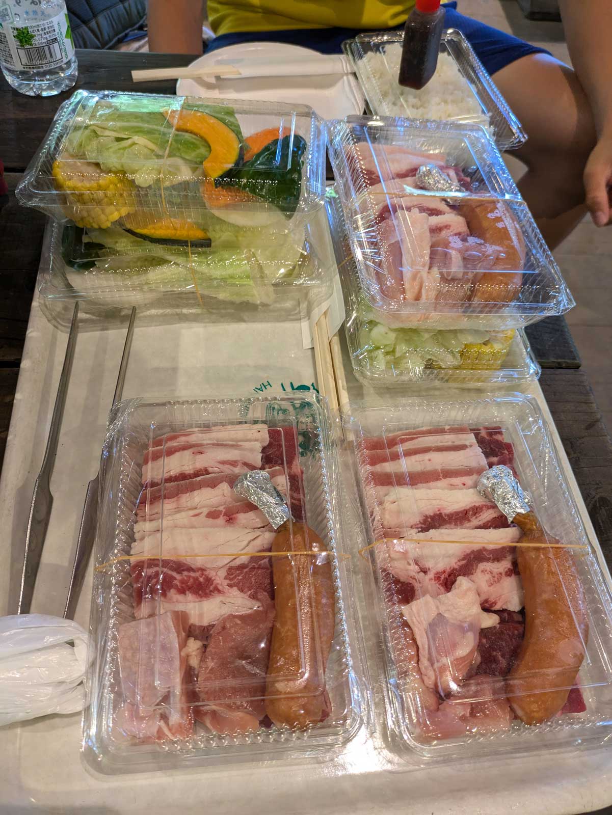 バーベキューはガスコンロで肉を焼いて食べるのかなと思っていたが、炭が用意されていて、自分で火を起こさないといけないパターンだった。 炭から起こすバーベキューは自分では1回しかやったことがないので、火を起こせるだろうか? 説明書きされた紙があったので、その通りにやったが、なかなか思うように火力が上がらず、食べ終わるのに1時間くらいかかってしまった。