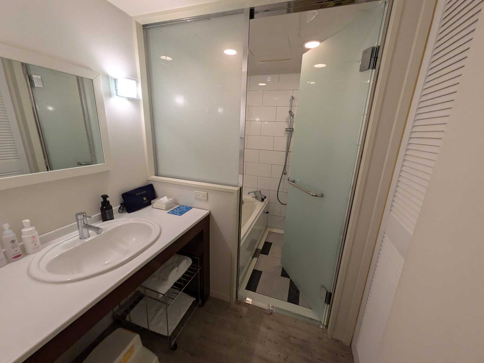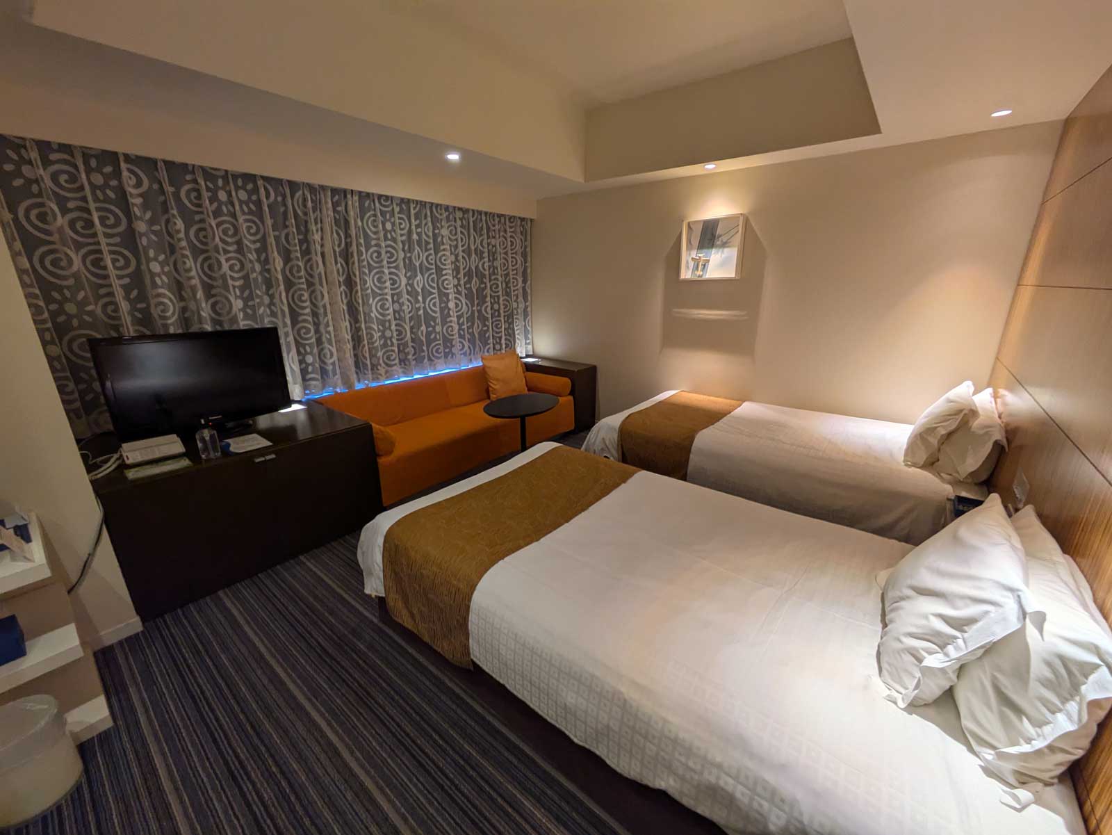 当初の予定では7/24にUSJで遊んで、7/25に帰る予定だったので、24日から1泊しかホテルを予約していなかった。 だけど「どうせなら23日も遊ぼう」ということで、今日のアスレチックの計画をしたのだ。 なので、今日の分のホテルは、後から予約したので、同じ部屋は取れなかった。 1泊目と2泊目で部屋が変わっても、フロントで荷物は預かってくれるだろうと思っていたが、部屋が変わる場合は、部屋に荷物をまとめて置いておいてくれたら、次の部屋までスタッフが移動してくれるとのことだった。