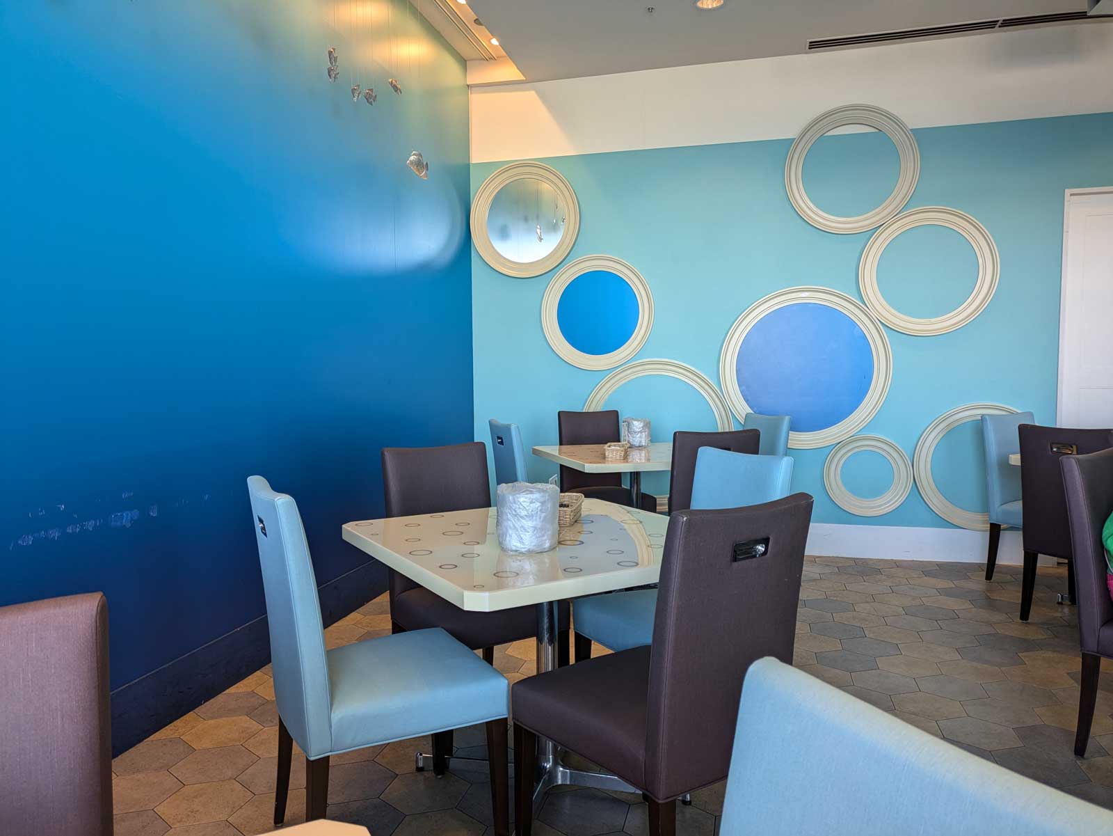 色々乗って疲れたので、すぐ近くにあった「ザ・ドラゴンズ・パール」というレストランで休憩。 まだ朝ご飯食べてあまり時間が経ってないので全然お腹が空いておらず、飲み物を飲んで休憩するだけだった。 入店した時は11時過ぎなのでまだ空いていたが、出る頃には席を探す人たちがウロウロしてたので、早めに休憩しておいて良かったと思った。