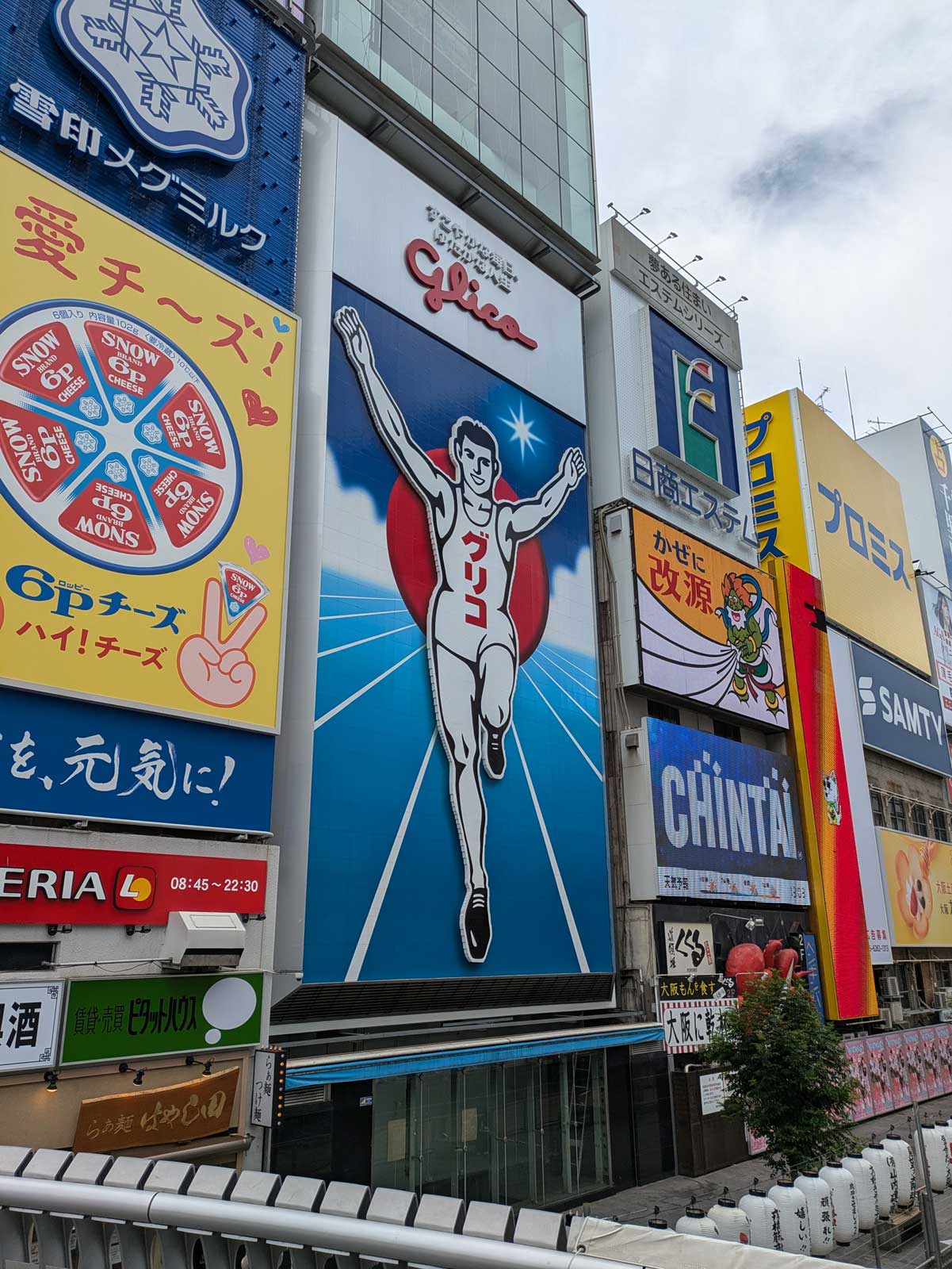 道頓堀商店街を歩いていたら、他にも射的の店が何店舗もあったので、射的は人気なのかな? グリコの看板の前に行ったら人だかり。 もちろん三女にグリコポーズを撮らせて写真を撮った。