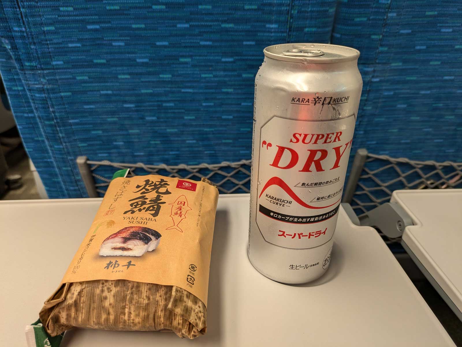 新幹線の券売機でJR大阪駅~高松駅までの切符を買う。 出発時刻は30分くらい余裕があるものを。 まずは大阪駅から新大阪駅まで移動。 新大阪駅は先程来たばかりだが、今度は改札の中。 ここでもお土産を見たが、外に売っているものとほぼ同じだった。 夜ご飯の駅弁とビールを購入。 本当は車運転なのでビールは飲めないはずだったが、新幹線で帰ることになったのでビールが飲めるようになった。