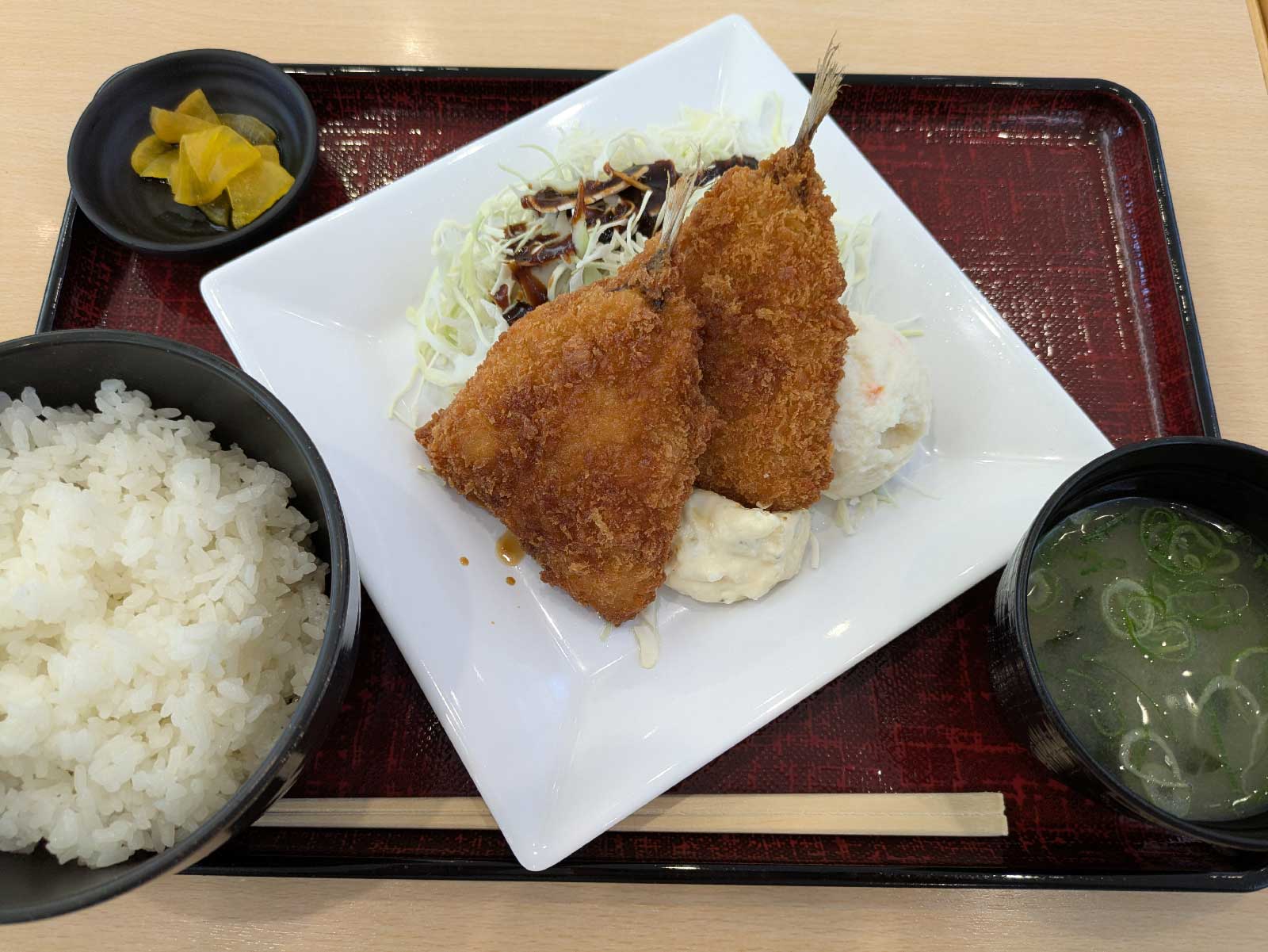 まだ9時半だけど、昼食は唐揚げ定食を食べる。