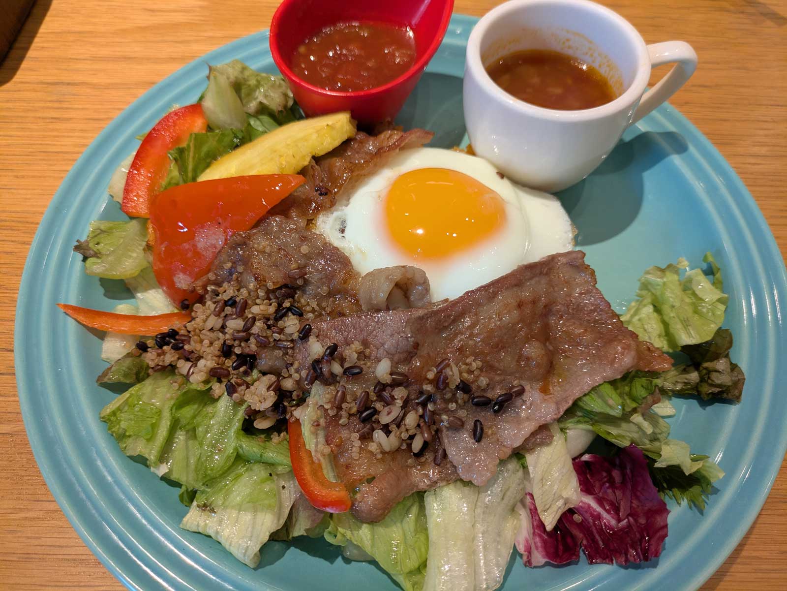 その足で「むさしの森珈琲」で朝ご飯。 グリルビーフのサラダジャンバラヤのセットを食べた。