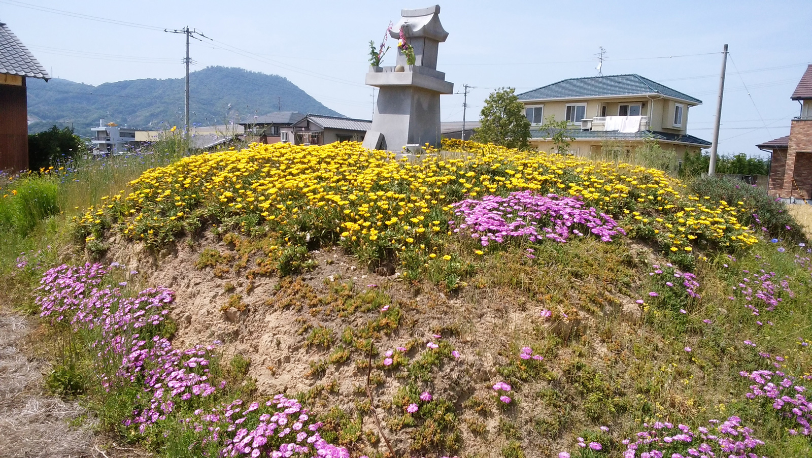 帰りは飯田町を抜けてきたのだけど、その途中で「塚」というものを発見した。 昔の人が作った土が盛られているものなのだけど、飯田町近辺で5箇所くらいあるらしく、せっかくなので見ていくことに。 今でも大切にされている、と看板には書いてあった。 その看板の合った場所も塚なのだけど、そこは幅1m長さ2mのとても小さな塚だった。 近くにある高月池の北側にもあるみたいなので、そこを見ていく。 畑の中に突然塚が出現。 綺麗にされていた。