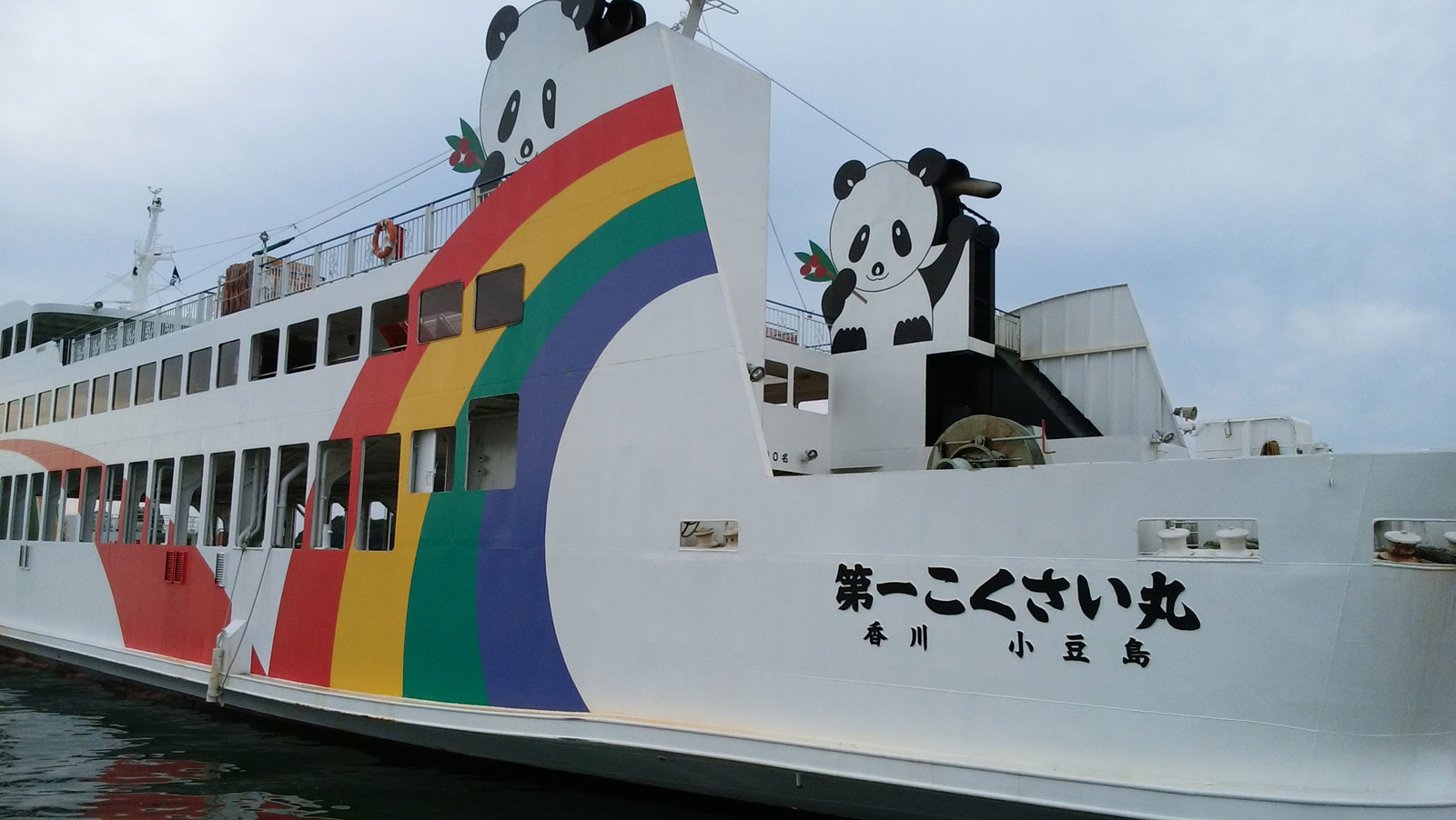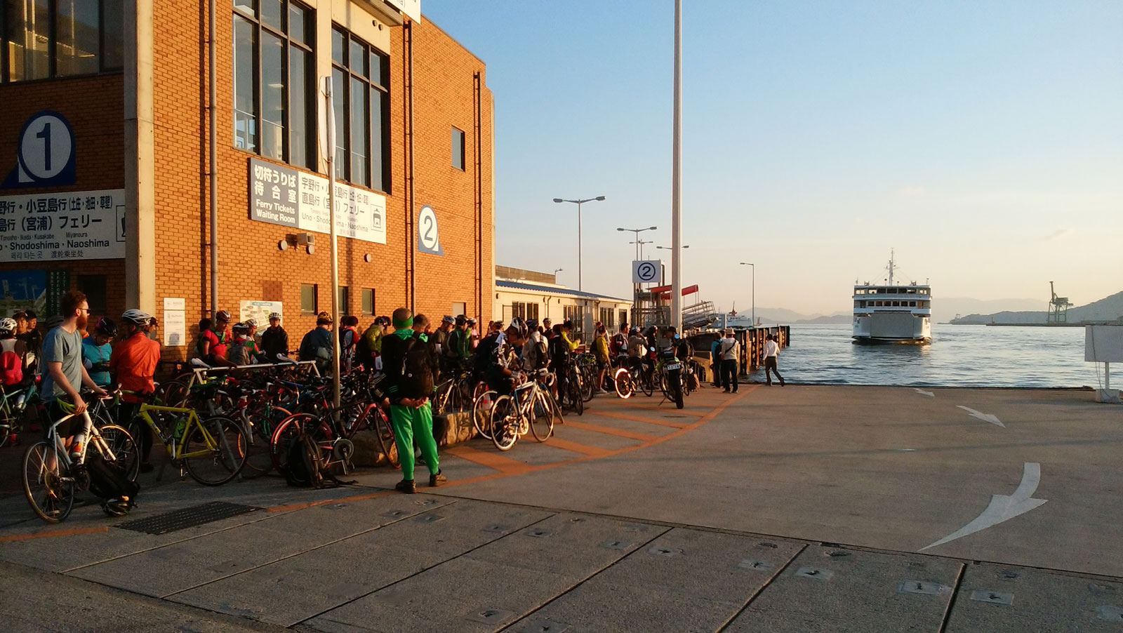 お風呂で汗を流して、筋肉をほぐしてフェリー乗り場へ。 案内係の人と話したのだけど、15時半の便では90台の自転車が帰っていったとのこと。 地元の話題になって、今年の夏の甲子園で小豆島の高校が甲子園に出場した時、応援団が甲子園に向けて出発するために、3社あるフェリー会社が深夜2時に臨時便を運行し、各船が500人ずつ送っていったとのことだった。 このおじさんは深夜2時に対応し、その日は普通に日勤だったので辛かったと……