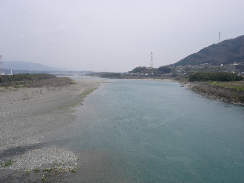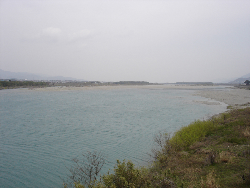 無事に山道を下りきって吉野川にでた! ものすごい川原の広い川。 ここは中流だけど400mくらいあるのだろうか。 川の南側の国道をひたすら走り徳島市を目指す。 あと45km!