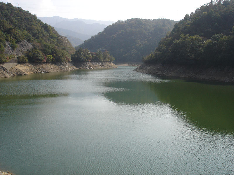あらかじめ地図で道を調べておいた。 山道を通りたい、なので山道をクネクネ走る県道を通っていこう。 空港通りを南に進み、塩江温泉郷付近を通る。 そして県道7号線へ。 ここから一気に山道になる。 ダムを横目に山道を走る。