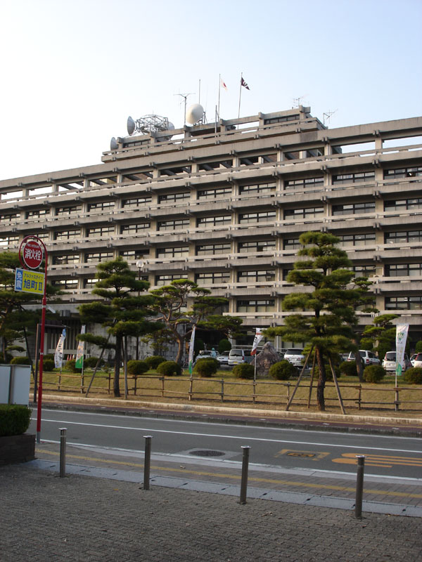 しばらく走り岡山県庁到着。 なんだか青森県庁っぽいなぁ。 まぁ古い建物なのでしかたない。 そのうち建て替えて高層ビルにしてくださいな。