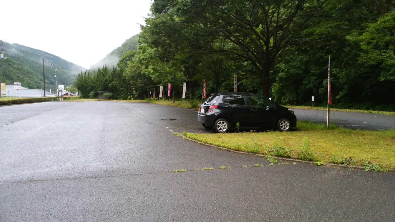 自分は、そこより30mくらい下がった場所に停めた。 別にどこに停めてもいいのだが、無理して奥まで行かないでいいかなと、歩く時間が数分延びても、登山で何時間も歩くので誤差だろうし、そもそも歩くために山に来ているので。