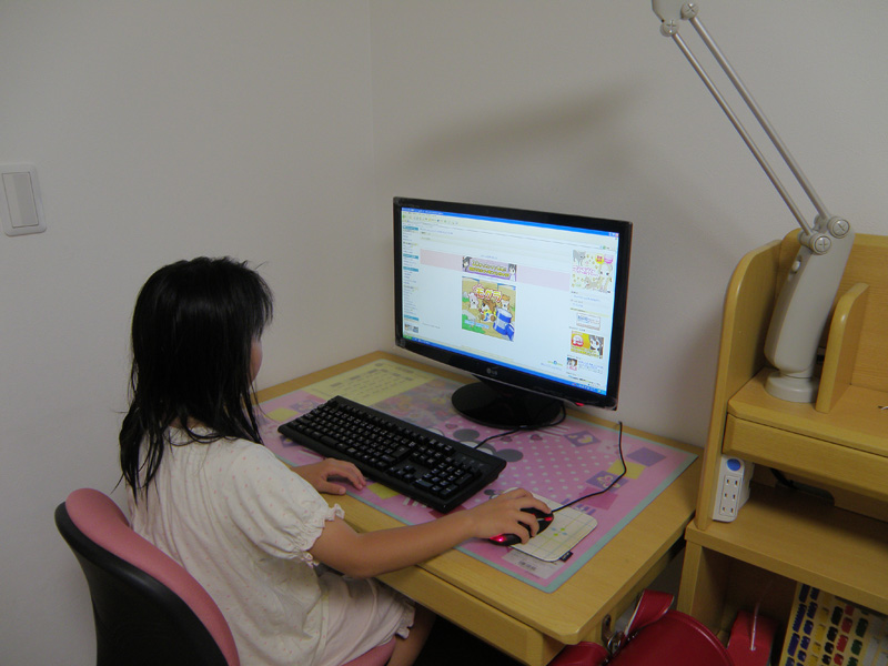 さて、これから基本のマウス操作やタイピングの練習を。 ただ、学校でまだローマ字を習ってないので、それを覚えさせるのが大変かもしれない。 まずはゲームとかして、パソコンに慣れることが重要かな。