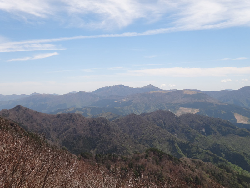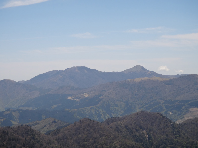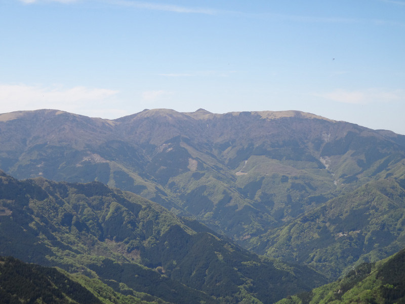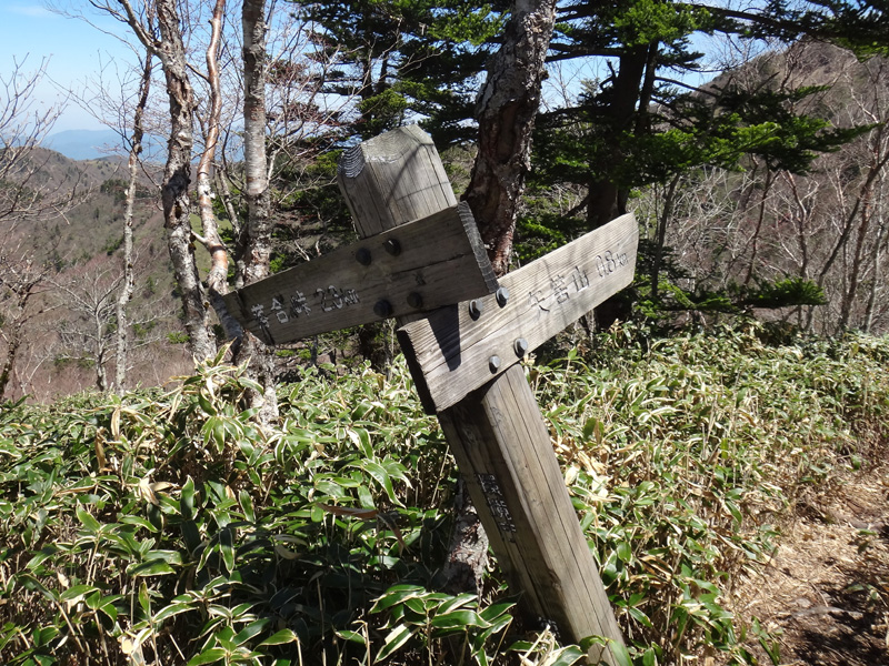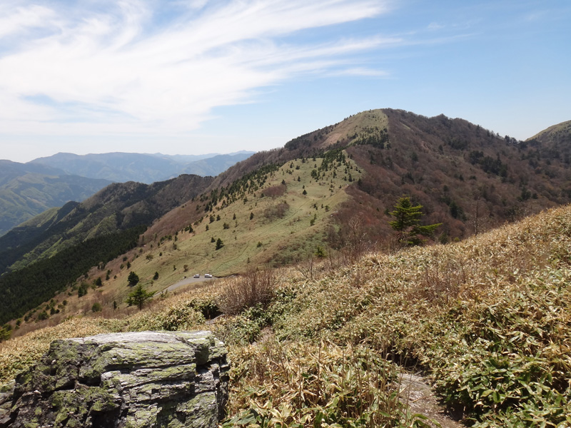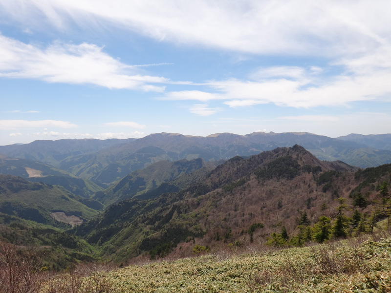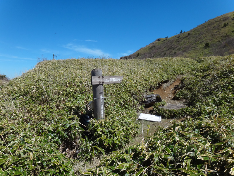 最初の笹原の登りを終え、遠くに矢筈山を見ながら歩いていく。