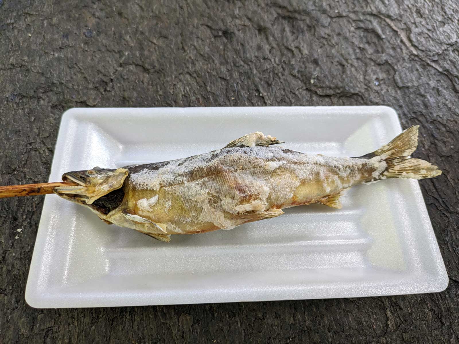 かずら橋に向かって歩いている途中にあった茶屋で、鮎の塩焼きを購入、とても美味しかった。 橋渡ってから再び店の前通ったときは、焼き物はもう片付けられていたので、先に食べておいて良かった。