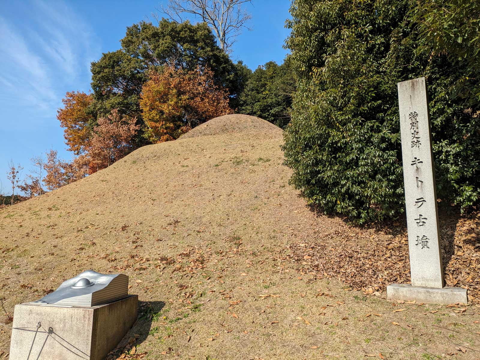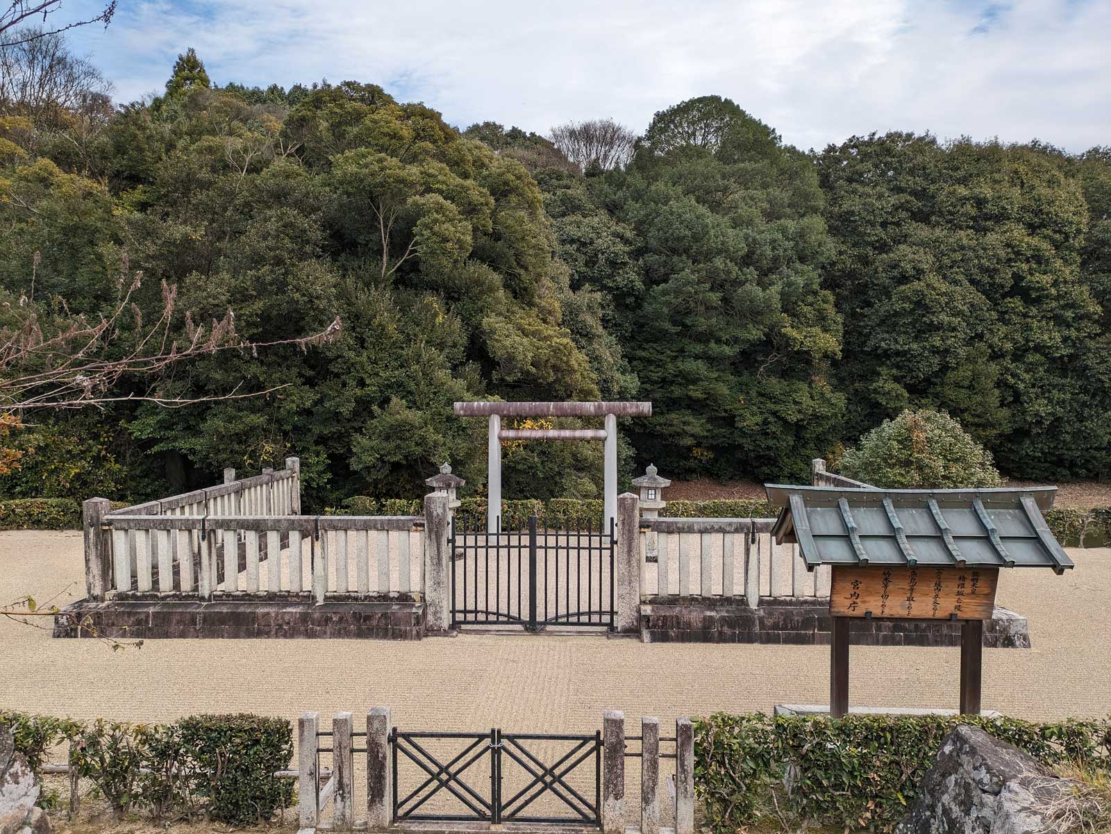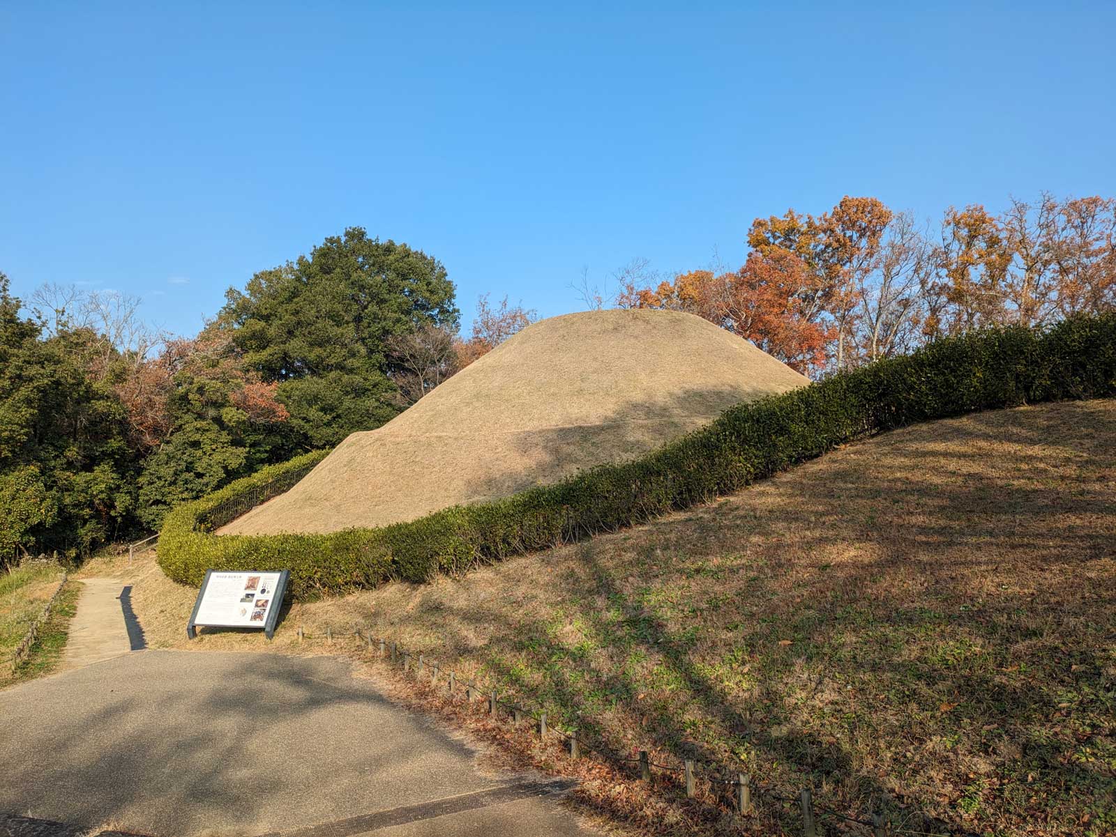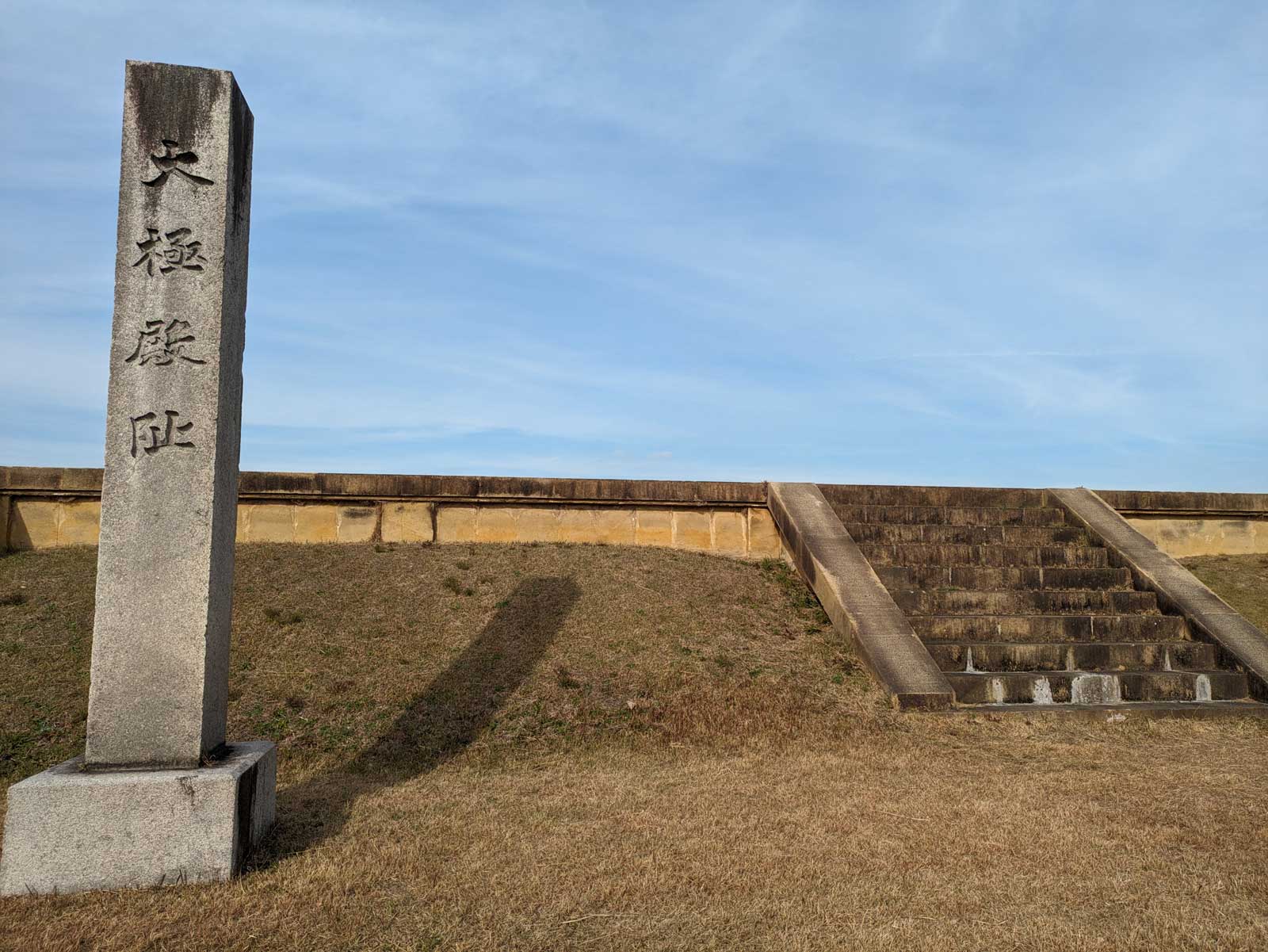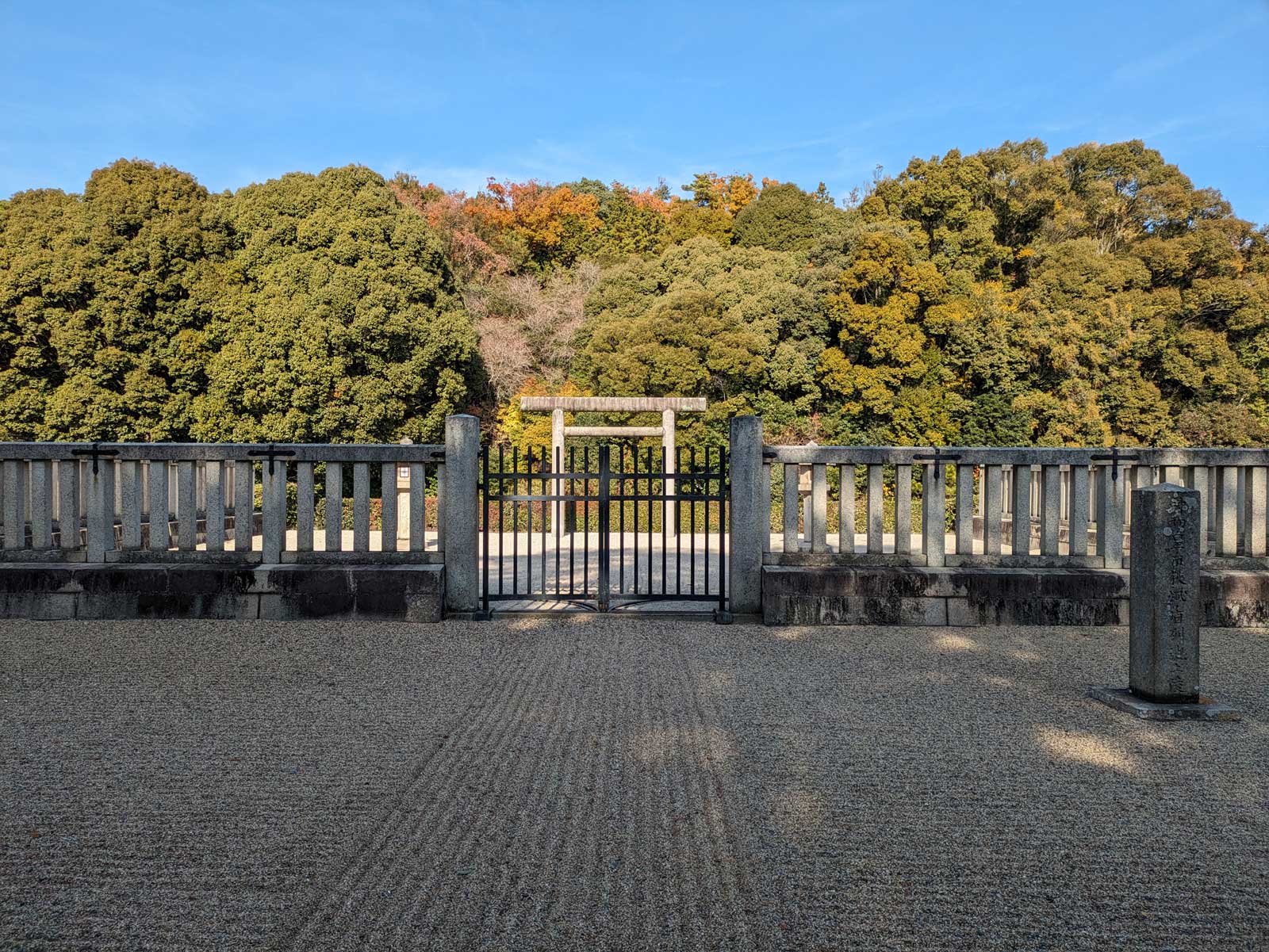 この付近には前方後円墳が多数ある。 それらを見てみたいと思っているので、近くにあった「五社神古墳 (神功皇后陵)」という所に行ってみた。 当然古墳には入れないし、柵がされていて近づくことすらできなかった。 天皇の墓なので「宮内庁」が管理しているらしく、宮内庁の看板が建ててあった。 それから「佐紀石塚山古墳」「佐紀陵山古墳」を見てから平城宮跡へ。 北側はすぐ側だけど、正面から入りたかったので南側まで自転車を走らせる。