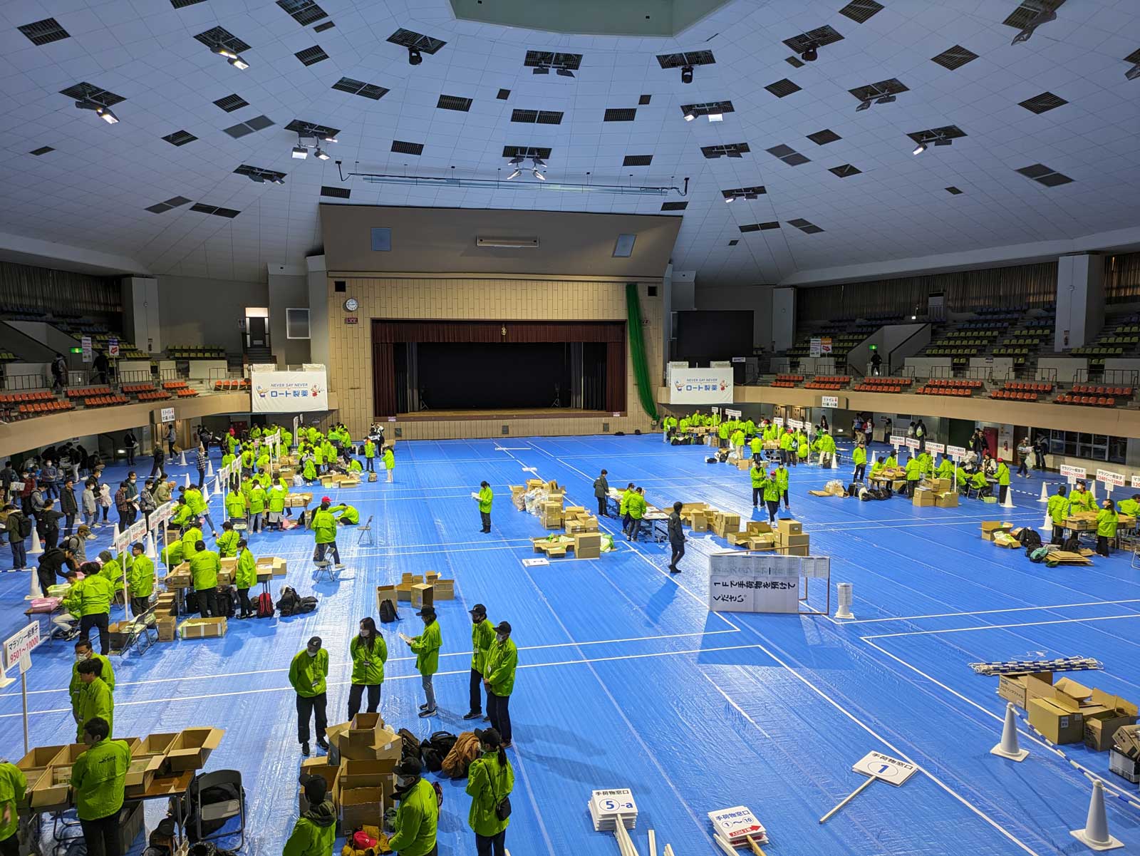 1時間ほど自転車漕いで、14時50分くらいに会場の「ロートフィールド奈良(奈良市鴻ノ池陸上競技場)」に到着した。 車での来場控えるようにチラシが入っていたが、付近は大渋滞していた。 自転車を止めて体育館で受付。 受付はすぐに終わった。 競技場前の広場で出店やステージがあるのでぶらりと見てきた。 お昼ごはんまだ食べてなかったので、出店で目玉焼き入りの焼きそばを購入。