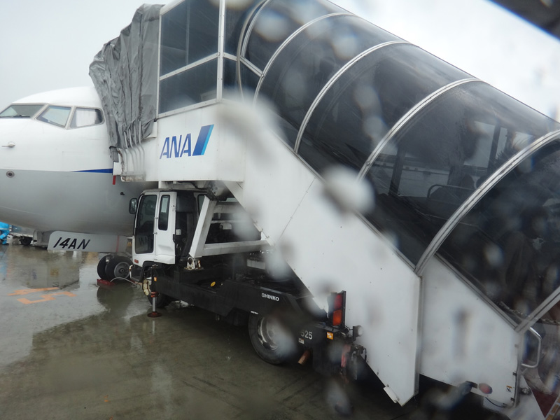 飛行機が着陸したくらいから、雨が降り始めてきた。 空港はかなり広く、着陸した場所から、飛行機が止まる場所までだいぶ移動した感じがする。 空港には自衛隊の施設などがかなりあった。 普通の空港では、こんな光景見ることができないな。