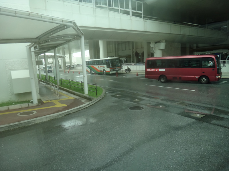 飛行機から空港の建物まではバスで移動。 松山から来た便は辺鄙なところへ止められたようだ。