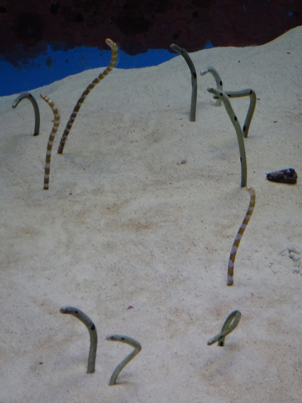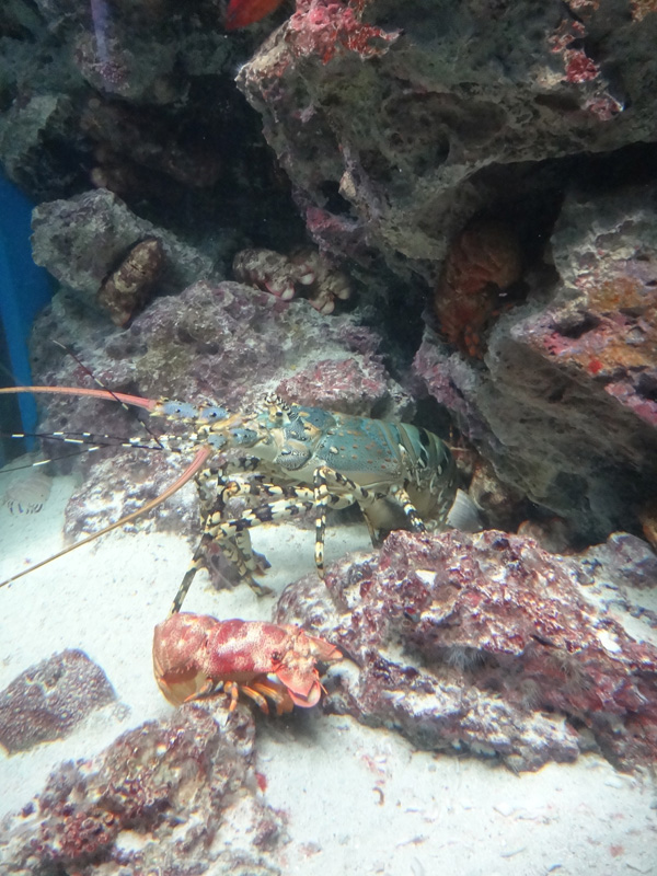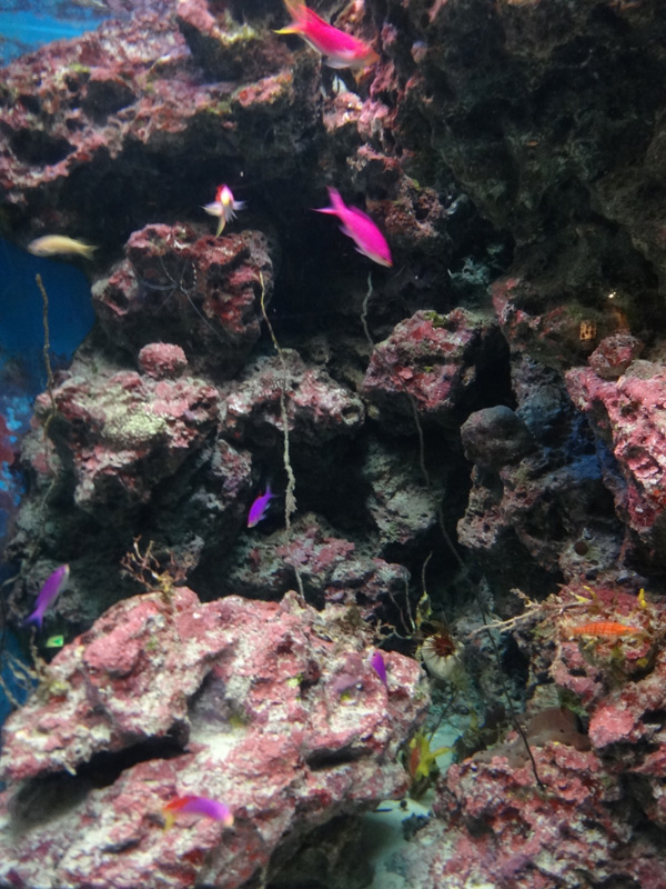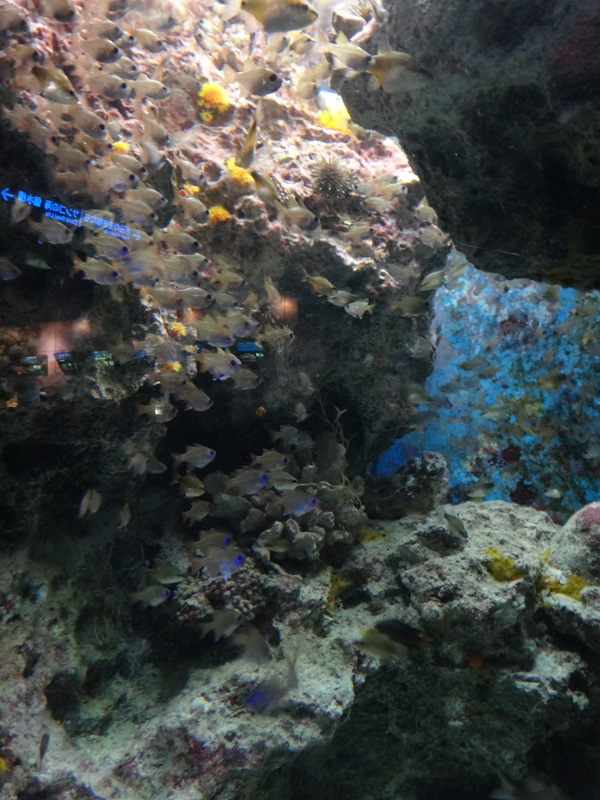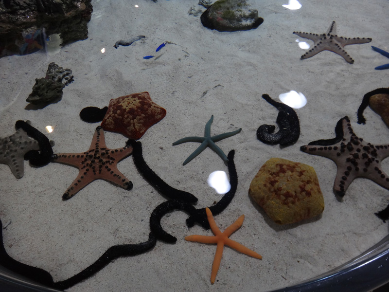 入ってすぐにナマコやヒトデを触れる水槽があり、それらを触って楽しむ。 ナマコは柔らかかったけど、ヒトデは思ったよりも硬かった。