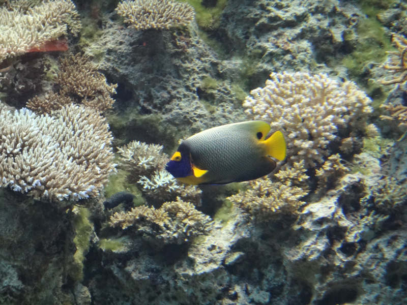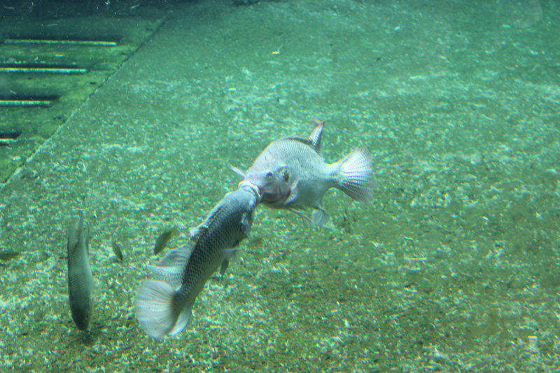 他にはマンタみたいなやつのエサやりも。 これは、イワシの切り身が投入されていた。 マンタは噛み切ることが難しいので、地面に落ちたイワシの切り身を、地面にこすり付けるようにして小さくし、食べる、と言っていた。