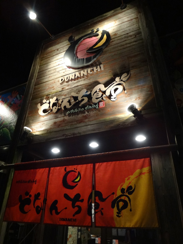 集まっているという「どなんち食堂」という店。 入ったのだけど、みんながおらず…… 店員に聞いたら、すぐ先にも「どなんち食堂」というのがあるらしい。 電話確認してくれて、そっちにいることが判明したので、そちらに移動。
