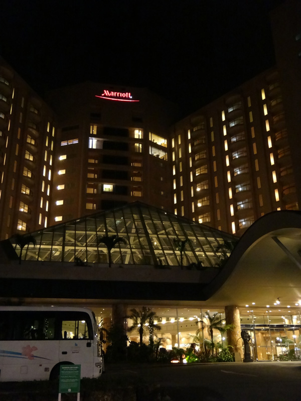 今回泊まるホテルは「オキナワ マリオット リゾート&スパ」というホテル。 名護市のホテルで、恩納村と名護の間くらいにある。 島の中北部に位置するので、けっこう那覇まで行くのが遠いな……