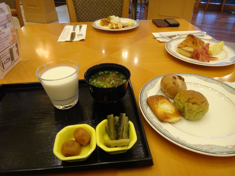 痛い足を引きずりながら1F食堂で朝ごはんを食べる。
