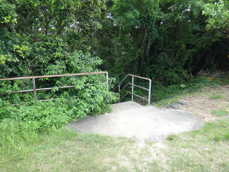 糸洲の壕への道、普通の畑道。 こんなところに下りていくのか?というような階段を下りていく。