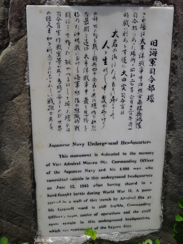 上官は、沖縄人がいかに戦争で活躍したか、の電報を打った後、手榴弾で自決したらしい。 手榴弾の破片の跡が残る部屋があった。