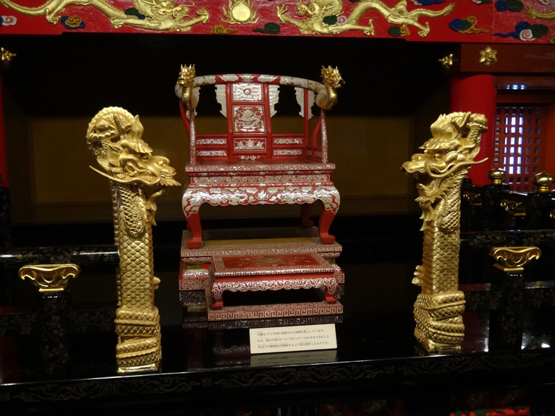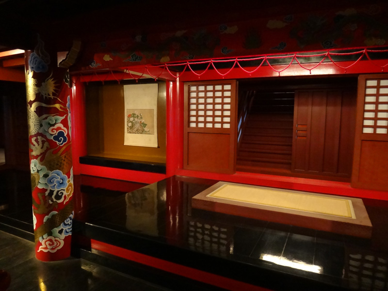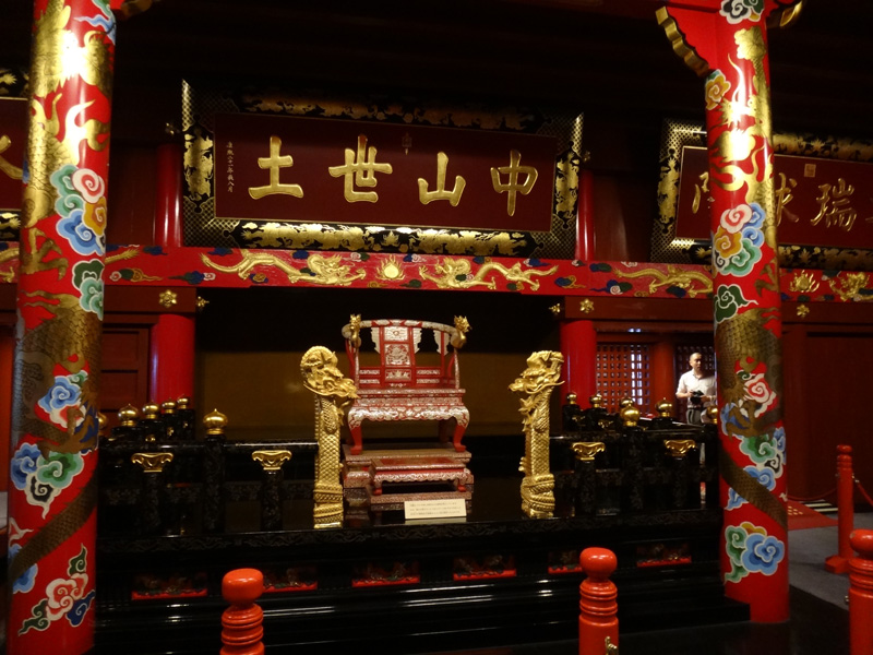 建物の中はけっこう撮影禁止の場所が多かった。 当時の書面や器などがあった。 閉場間際の首里城はかなり空いており、けっこう快適に見学することができた。