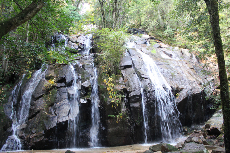 500円払って橋を渡り、滝の水を触って冷たさを実感し、あめごの塩焼きを食べ大満足。
