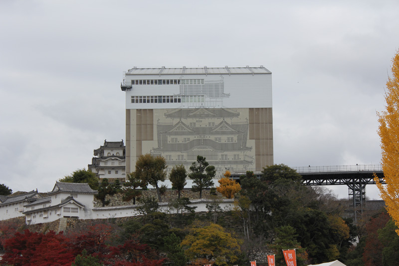 工事中の風景を見ることが出来る施設は「天空の白鷺」という名前がついており、エレベータに乗って8Fまで上がることができる。