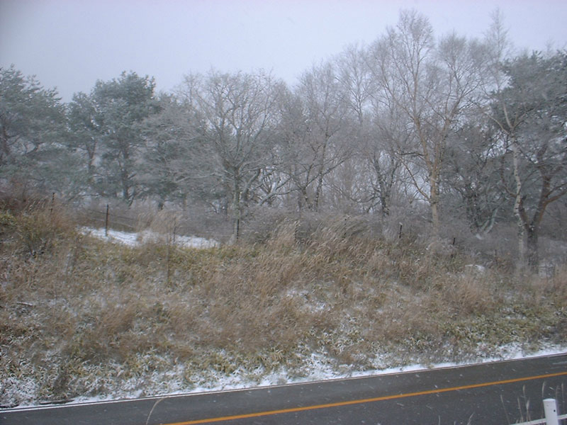 今シーズン初めて見る雪に感動した。 しかし雪は原付の強敵だ。 すぐに滑ってしまうから…
