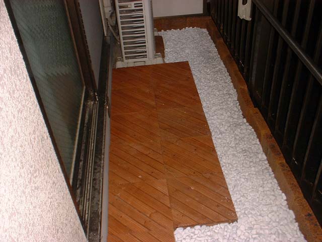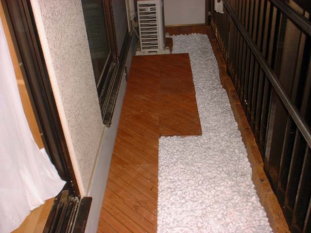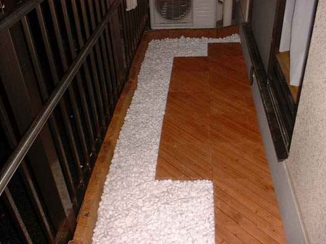 手すりと床に微妙な隙間、隣の家との壁の下にも微妙な隙間。 これを埋めるためにレンガを買ってきた。