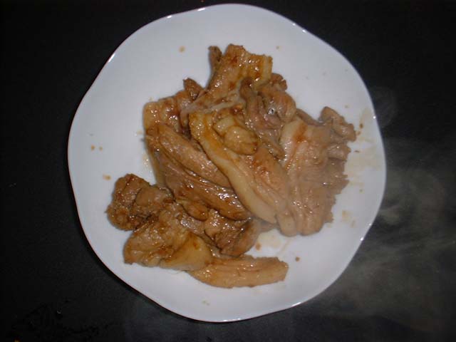 仕事終わって家に帰る。 途中スーパーで豚肉を買ってきた。 今日の夕飯は豚しょうが焼き。 最近これが多い。 最近日記のネタがないので、夕飯を写真に収めてみた。 ちょっと気持ち悪いかも。