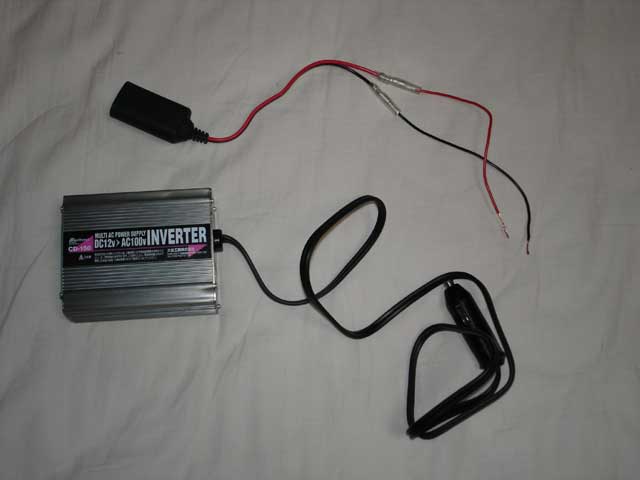 3000円のインバーターとシガレットソケット、各種電気工具を買ってきた。 ノートパソコンを買ったからにはインバーターを取り付けないわけにはいかない。