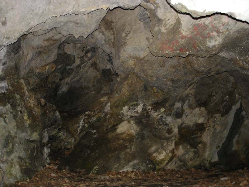 ちゃんとヘッドランプを持ってきたので、電池を新品に交換してさっそく中に入る。 しかし10メートルくらい行ったところで「バタバタ」と変な音が聞こえる。 何かと思って辺りを照らすとコウモリがいるではないか…… 3匹が天井付近を飛び回っている。 うゎーきもちわるい。