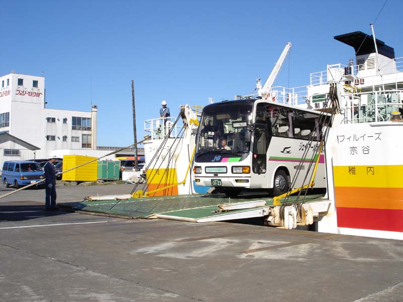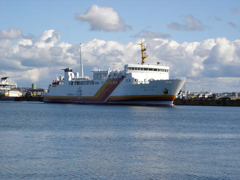 今朝の寒さをなんとかするために、服屋を探す。 すぐに見つかった。 今まで行動用ズボンは1つしかなかったので、もう1つ買う。 それと大き目のトレーナーを買った。 大き目を買ったので、今着ている洋服の上から重ね着しても余裕なサイズ! ズボンが高くて、値段は張ったが必要なものなのでしかたない。 そしてコンビニでお昼ご飯を買う。 甘いものが食べたくなったので生クリーム入りプリンを購入。 それとパンをたくさん購入。 そして島にはホームセンターなどないだろうから、エンジンオイルも購入しておいた。 あと300kmで補充しなくてはならない。 たぶんそんなに走らないと思うけれど万が一ってことがあるし。 そしてフェリー乗場で時間になるまで待機。