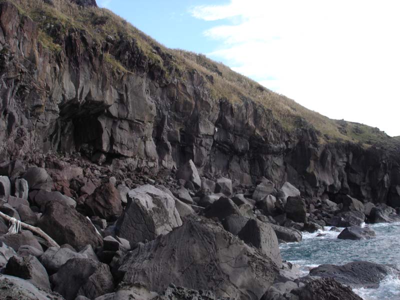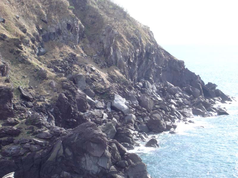 しばらく走り「厳門」という看板が見えてきた。 面白そうなので行ってみる。 しかしただ海水によって削られてできた洞窟だった。 面白くないなぁ。 だけど観光バスもきているほどの観光地? お土産屋がたくさんあったのが面白くなかった。